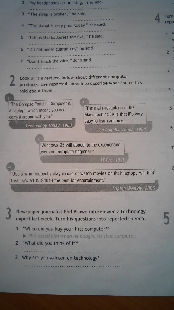 1)He said that he had bought a new camcorder