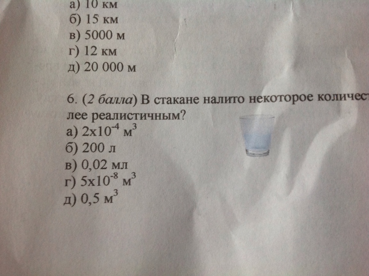 Скорее всего ответ А, так как среднестатистический стакан имеет объем от 0.2 Л, остальные ответы либо слишком мало, либо чересчур огромны