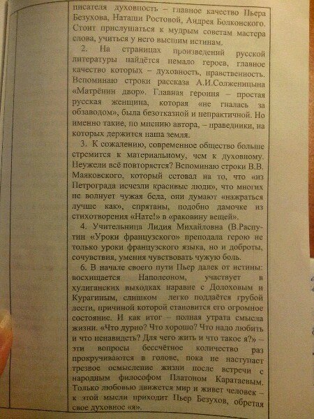 (1)До сих пор я не знаю: были у человеческого искусства два пути с самого начала или оно раздвоилось гораздо позже? (2)Красота окружающего мира: цветка и полёта ласточки, туманного озера и звезды, восходящего солнца и пчелиного сота, дремучего дерева и женского лица – вся красота окружающего мира постепенно аккумулировалась в душе человека, потом неизбежно началась отдача. (3)Изображение цветка или оленя появилось на рукоятке боевого топора. (4)Изображение солнца или птицы украсило берестяное ведёрко либо первобытную глиняную тарелку. (5)Ведь до сих пор народное искусство носит ярко выраженный прикладной характер. (6)Всякое украшенное изделие – это прежде всего изделие, будь то солонка, дуга, ложка, трепало, салазки, полотенце, детская колыбелька…(7)Казалось бы, очень просто. (8)Потом уж искусство отвлеклось. (9)Рисунок на скале не имеет никакого прикладного характера. (10)Это просто радостный или горестный крик души. (11)От никчёмного рисунка на скале до картины Рембрандта, оперы Вагнера, скульптуры Родена, романа Достоевского, стихотворения Блока, пируэта Галины Улановой… (12)Но что же было вначале: потребность души поделиться своей красотой с другим человеком или потребность человека украсить свой боевой топор? (13)А если потребность души, если просто накопившееся в душе потребовало выхода и изумления, то не всё ли равно, на что ему было излиться: на полезные орудия труда или просто на подходящую для этого поверхность прибрежной гладкой скалы.(14)В человеке, кроме потребностей есть, спать и продолжать род, жило две великие потребности. (15)Первая из них – общение с душой другого человека. (16)Она возникла оттого, вероятно, что душа – это как бы миллиарды отпечатков либо с одного и того же, либо с нескольких, не очень многих негативов.(17)Вторая же человеческая потребность – общение с небом, то есть с беспредельностью во времени и в пространстве. (18)Ведь человек есть частица, пусть миллионная, пусть мгновенная, но всё же частица той самой беспредельности и безграничности. (19)Символ этой безграничности, конечно же, небо.(20)…Кстати, и ступа ведь может быть произведением искусства. (21)Изящные уточки-солонки, деревянные ковши в виде лебедей. (22)Рубель, которым катали бельё, превращён в уникальное изделие. (23)Прясницы красноборские, валдайские, вологодские. (24)Цветы и солнца, птицы и листья деревьев, чаепития и масленичные катания – всё нашло себе место на этих прясницах, всё вплелось в общие узоры, в общую красоту.(25)Ведь, казалось бы, не всё ли равно, к какой доске привязать кусок льна и сучить из него суровую нитку. (26)Но, значит, не всё равно, если вот они, сотни прясниц, и нет двух совпадающих по рисунку или резьбе. (по В. Солоухину)