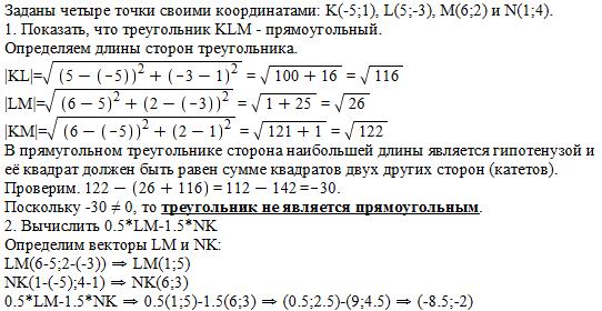 Даны точки K (-5;1),L(5;-3),M(6;2),N(1;4)