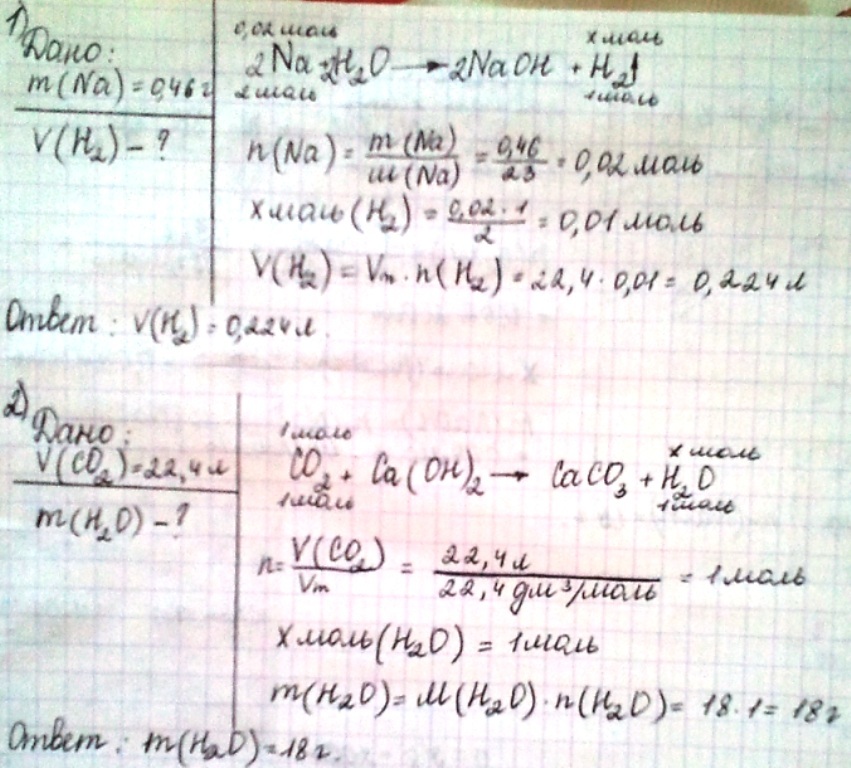 Во второй задаче нужно написать V=2,24/22,4=0,1 моль и в дано исправить условие: