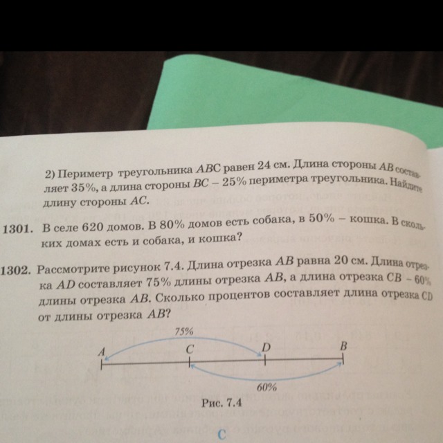35%. AB = 100%. DB = 100% - 75% = 25%. AC = 100% - 60% = 40%. CD = 100% - (25% + 40%) = 35% (1302)