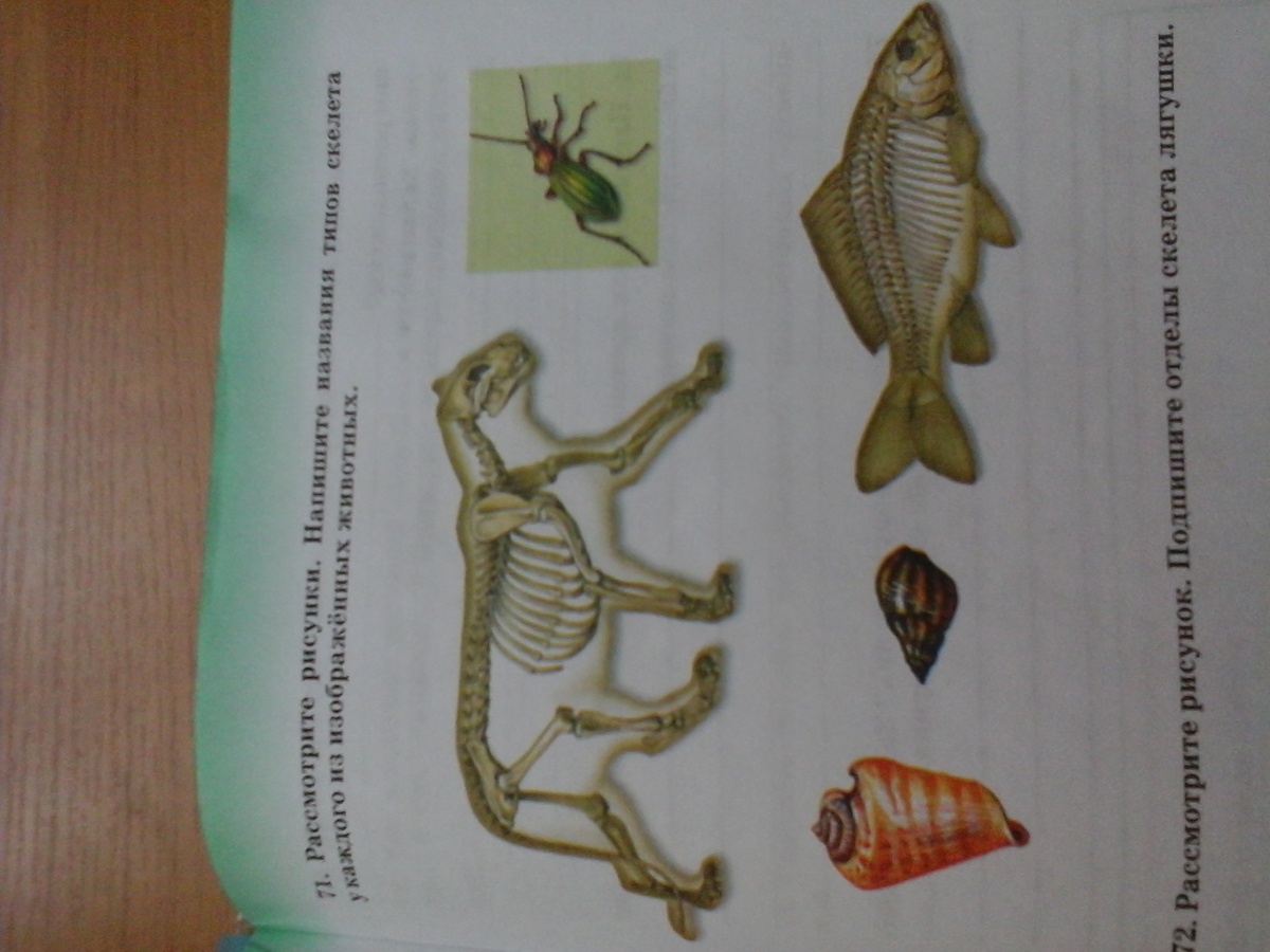 рассмотрите рисунки.напишите названия типов скелета у каждого из изображённых животных