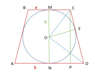 Площадь равнобедренной трапеции ABCD с основаниями ВС и АD , описанной около окружности с центром О и радиусом 3 см , равна 60 см в кв . Найдите радиус окружности , описанной около треугольника OCD .
