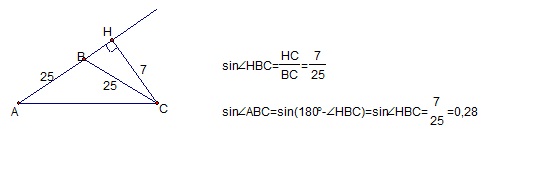 sin уг. АВС = sin уг. СВН = 0,28