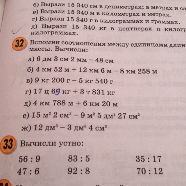 6 дм 3 см 2 мм - 48 см =152 мм 4 км 52 м + 12 км 6 м -8 км 258 м = 7800 м 9 кг 200 г -5 кг 540 г= 3660 г 17 ц 69 кг + 3 т 831 кг = 5600 кг 4 км 788 м + 6 км 20 м = 10808 м 15 м2 2 см2 - 9 м2 5 дм2 27 см2 = 59475 см2 12 дм3 - 3 дм3 4 см3 = 8996 см3
