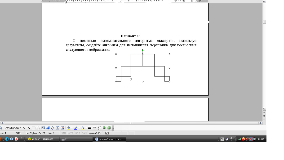 С помощью вспомогательного алгоритма «квадрат», используя аргументы, создайте алгоритм для исполнителя Чертёжник для построения следующего изображения: