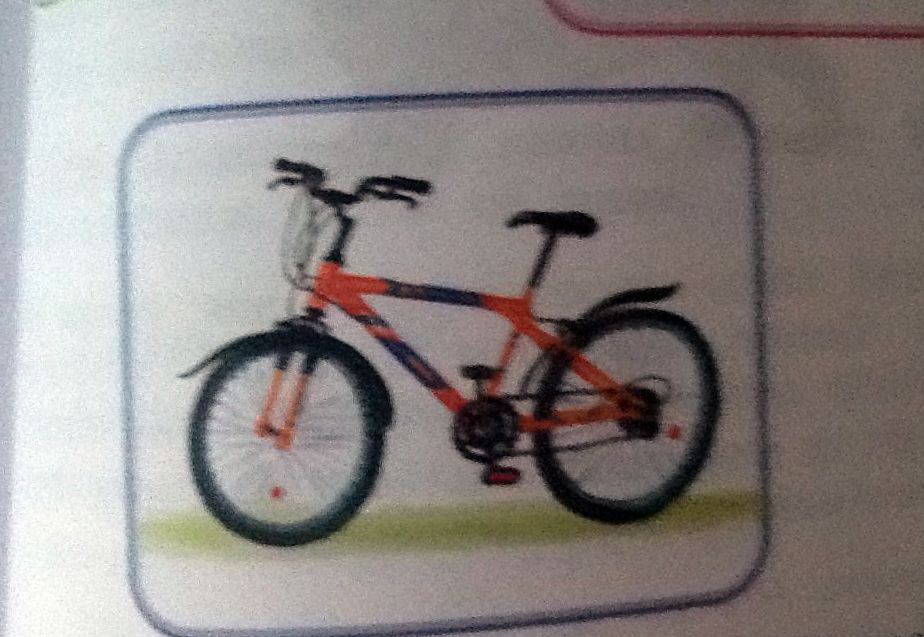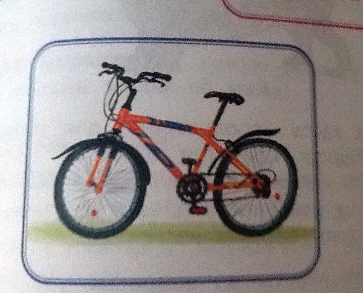 Он оранжевый и у него чёрные полоски.На нём есть звонок.Этот велосипед скоростной.Мне приятно на нём ездить.
