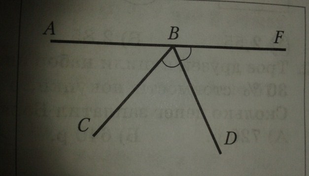 Градусная мера угла АВС, изображенного на рисунке, равна 50градусов, луч ВD-биссектриса угла СВF. Найдите градусную меру угла АВD.