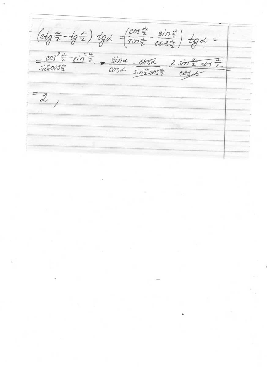 (ctg a/2 - tg a/2)tg a=((1+cos a)/sina - (1-cos a)/sin a)tg a