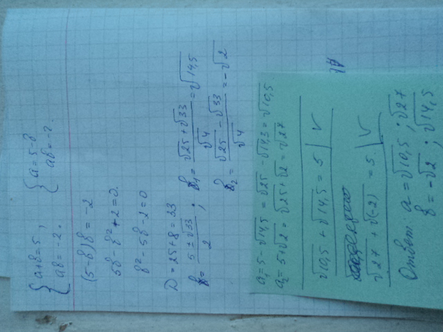 В2 = ( 5 + кв корень(25+8))/2 = 2.5 + кв корень(33)/2