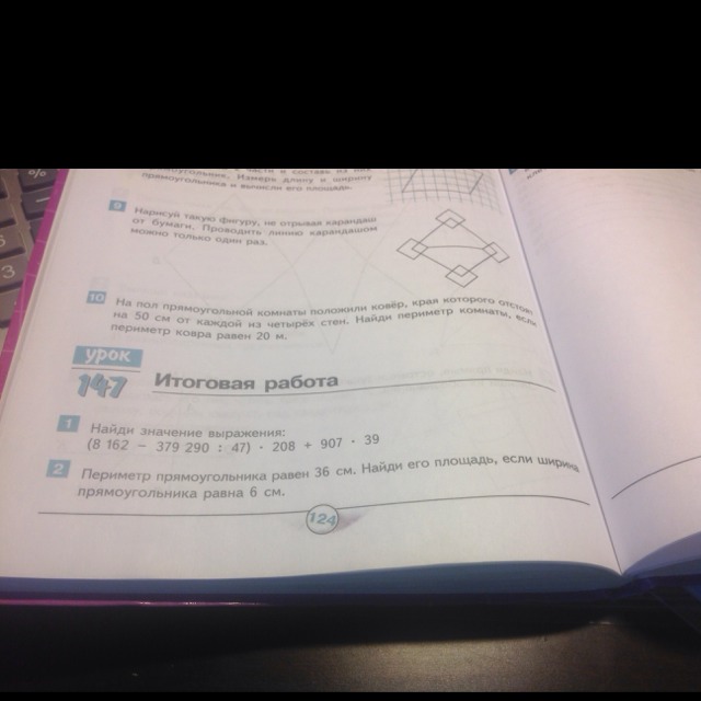 Периметр прямоугольника равен 36 см. Найди его площадь , если ширина прямоугольника равна 6 см. 2 номер