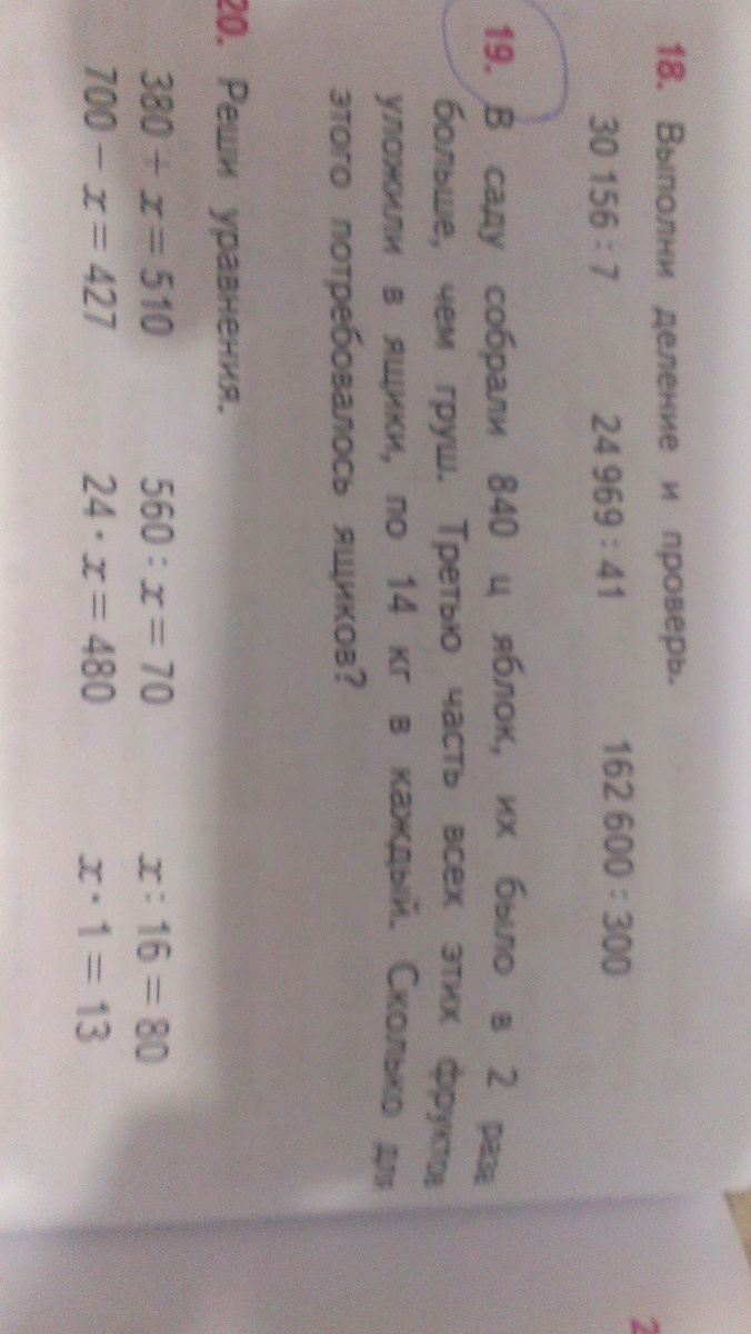 в саду собрали 840 ц яблок их было в 2 раза больше чем круш третью часть всех этих фруктов уложили в ящики по 14 кг в каждый сколько для этого потребовалась ящиков