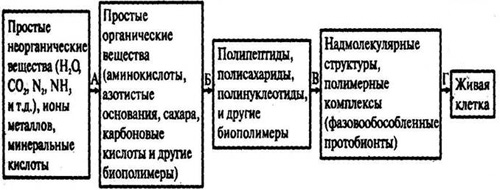 По Опарину, процесс возникновения жизни на нашей планете можно разделить на ряд этапов: 1