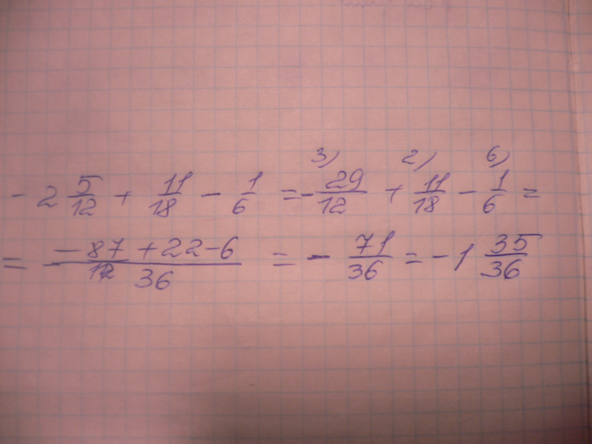 -2 5/12+11/18-1/6=(-87+22-6)/36=-71/36=-1 35/36