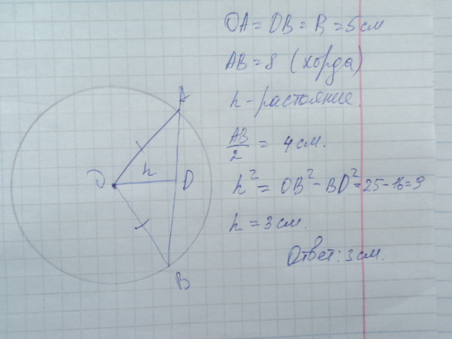 Радиус круга 5. На каком расстоянии от центра круга расположена хорда длиной 8.