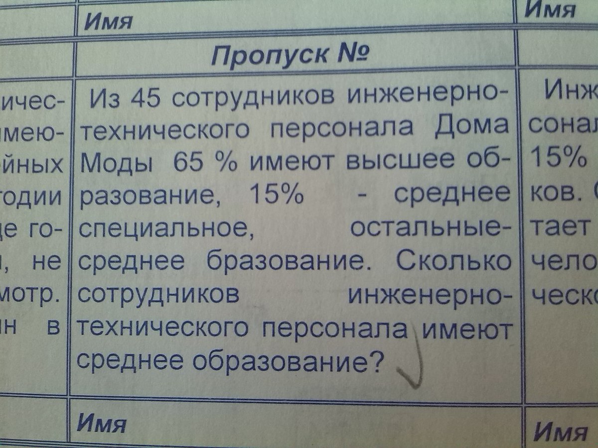 45*0,2=9 сотрудников имеет среднее обр-ние