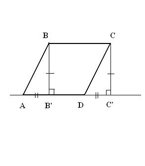 Спроектируем отрезок ВС на прямую AD. Поскольку ВС||AD BB'=CC', углы при пересечении ВВ' и СС' с прямой АD прямые. Т.к. ВС=AD при проектировании DC'=AB',