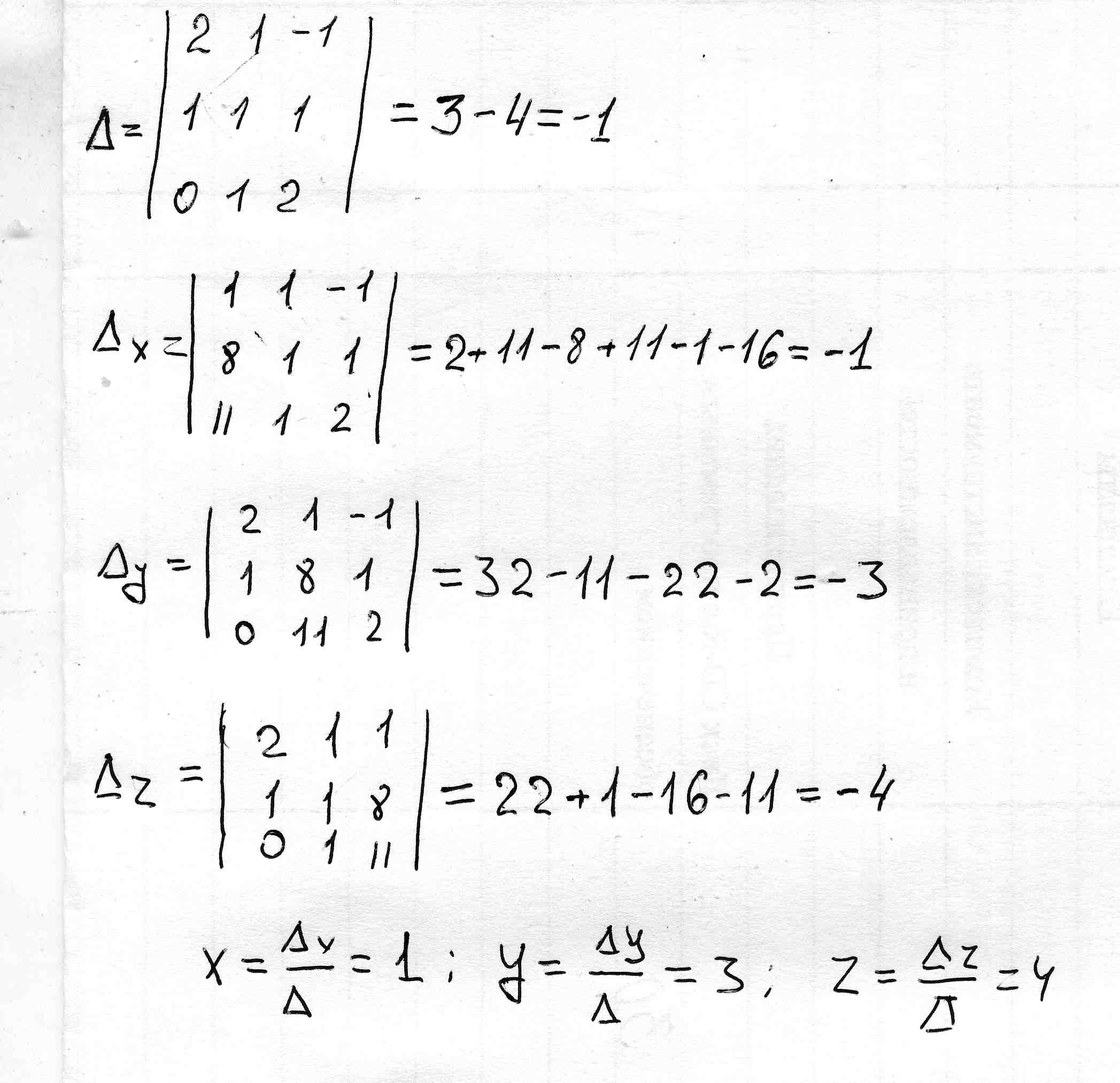 РЕШЕНИЕ СИСТЕМЫ x=1 y=3 z=4