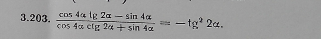 =((sin2a*cos4a)/cos2a-2sin2acos2a)/(cos4a*cos2a/sin2a+2sin2acos2a)=