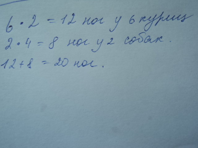 у одной собаки 4 лапы значит у двух собак: 4+4=8 (лап) или 2 способ: