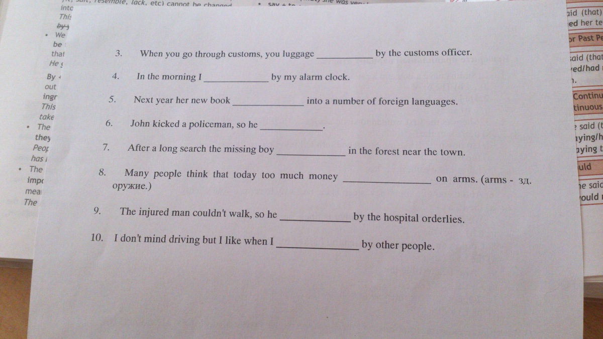 9. The injured man couldn't walk, so he has been carried by the hospital orderlies.