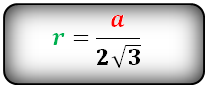 Находим радиус вписанной окружности в равносторонний треугольник по формуле: