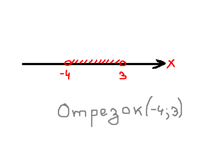 Дана аналитическая модель числового промежутка: –4 < х < 3. Постройте его геометрическую модель и составьте соответствующую символическую запись.