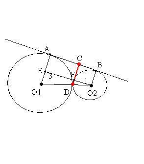 две окружности радиусов R=3 и r=1 касаются внешним образом найдите расстояния от точки касания окружностей до их общих касательных