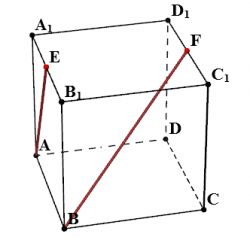В кубе А...D1 точки Е,F-середины ребер соответственно A1B1 и C1D1.Найдите косинус угла между прямыми AE и BF.