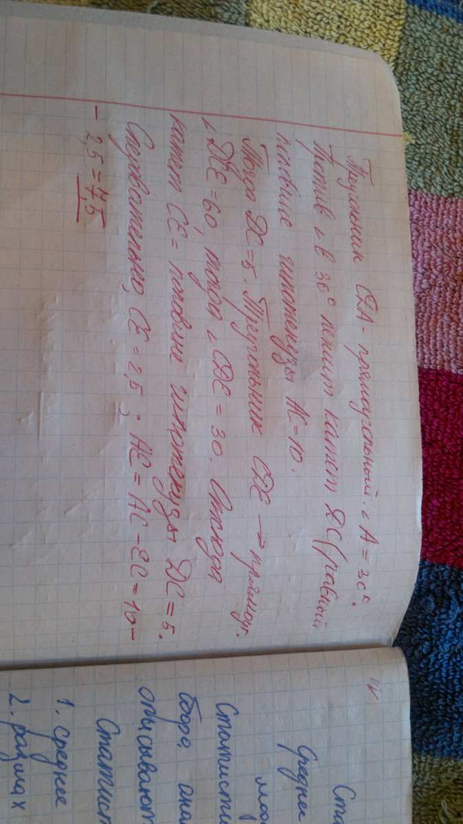 В прямоугольном треугольнике АВС угол C=90,угол А=30 АС = 10 см, СD перпендикулярна АВ, DE перпендикулярна АС. Найдите АЕ.