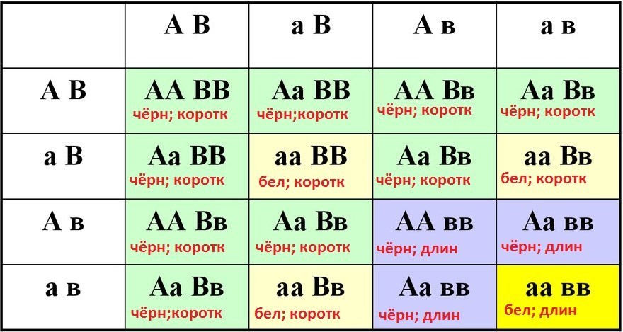 A -- чёрный цвет; a -- белый цвет; B -- короткая шерсть; b -- длинная.