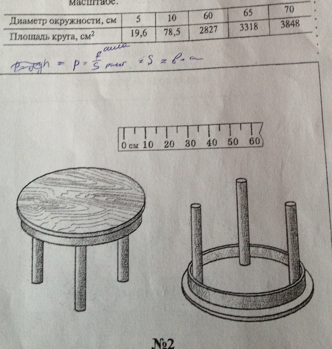 Стол массой 80 кг имеет ножки круглого сечения. определите давление которое производит на стол в двух положениях, показанных на рисунке. Во сколько раз и почему изменилось давление?
