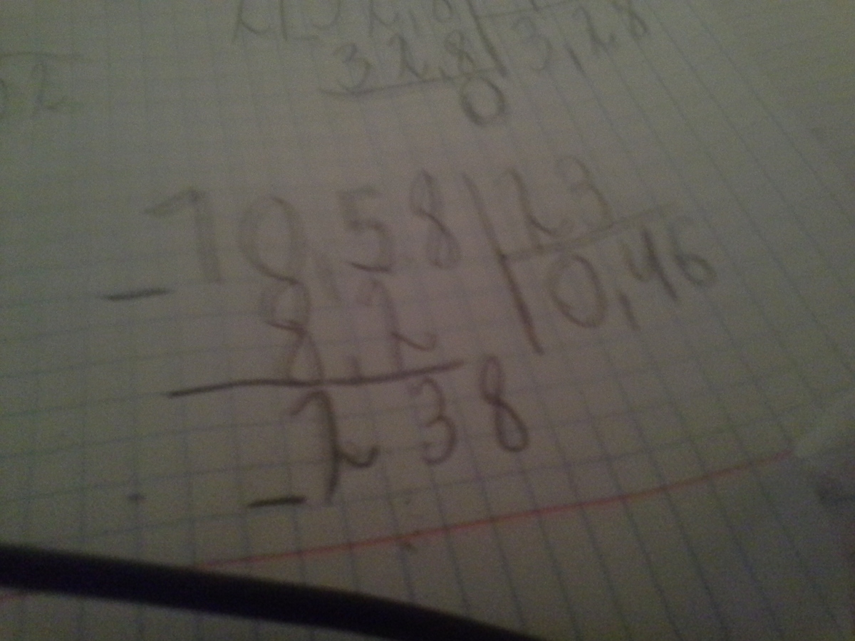 Сколько будет 10,58 : 23. ПОЖАЛУЙСТА ДАЙТЕ ДЕЛЕНИЕ СТОБИКОМ. ВОТ НАПРИМЕР ВОТ ТАК: