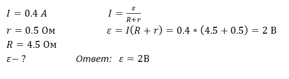 E=I*(R+r)= 0.4*(0.5+4.5)=0.4*5=2 В