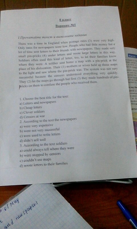 Был момент, во времени в Англии, когда почтовые цену (3) были очень высоки, только ставки для газет были низкими. Люди, которые имели мало денег, но много времени, отправленные письма своим друзьям с газетами. Они сделали очень маленькие пин-уколы (4) на основании писем и написал большими буквами на этом пути Солдаты часто используется этот вид письма тоже, чтобы их семьи знают, где они были. Солдат отправили домой карту с пин-укола ATTHE месте его дислокации. Их (1) мать или жена Белд до тех карт на свет и увидели, где пин-укол был. Система была не очень быстро. Они (2) пусть карты пройти, но в первую очередь (5) они сделали сотни пин-уколов на них, чтобы запутать людей, которые получили их.