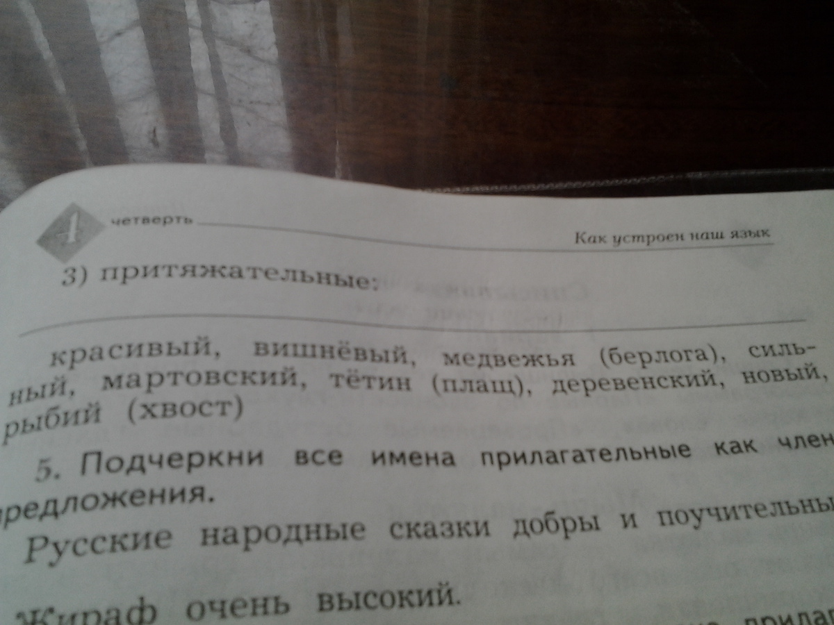 притяжательные:медвежья,тётин,рыбий.