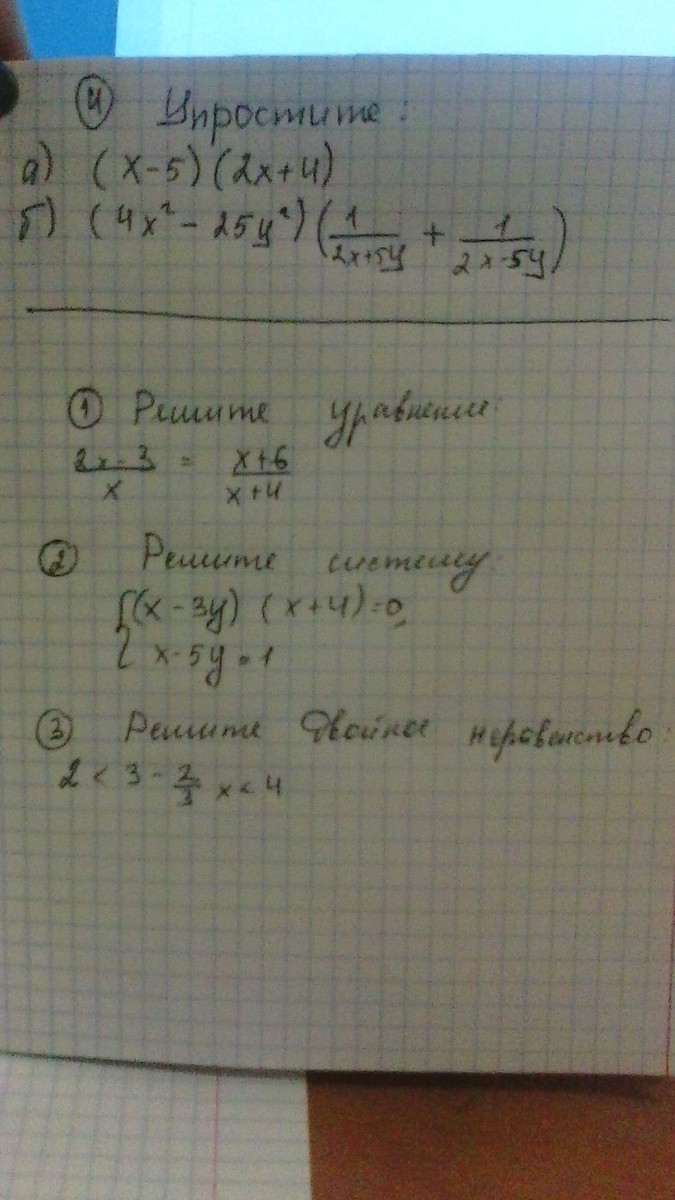 а) (х-5)(2х+4)=2х²+4х-10х-20=2х²-6х-20=0
