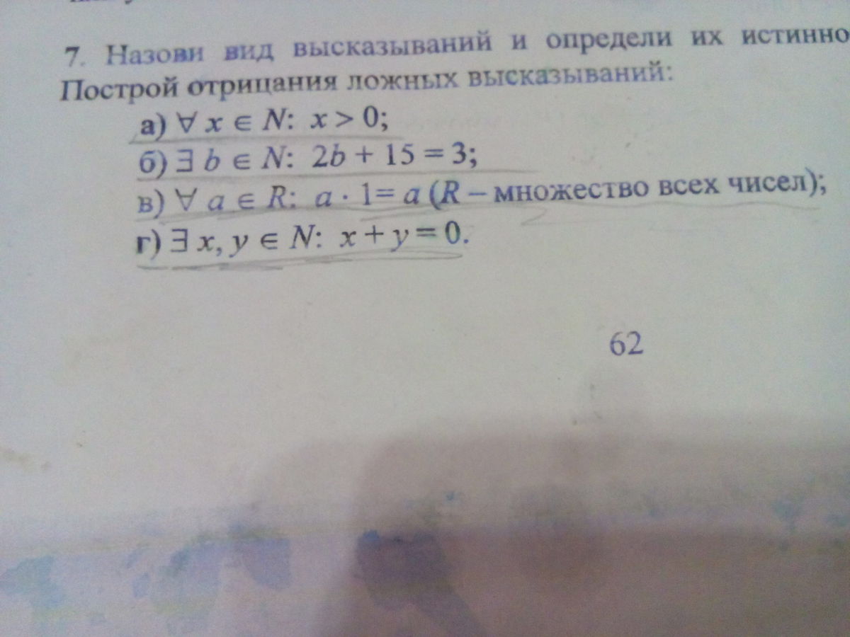 Назови вид высказываний и определи их истинность или ложность .Построй отрицания ложных высказываний: