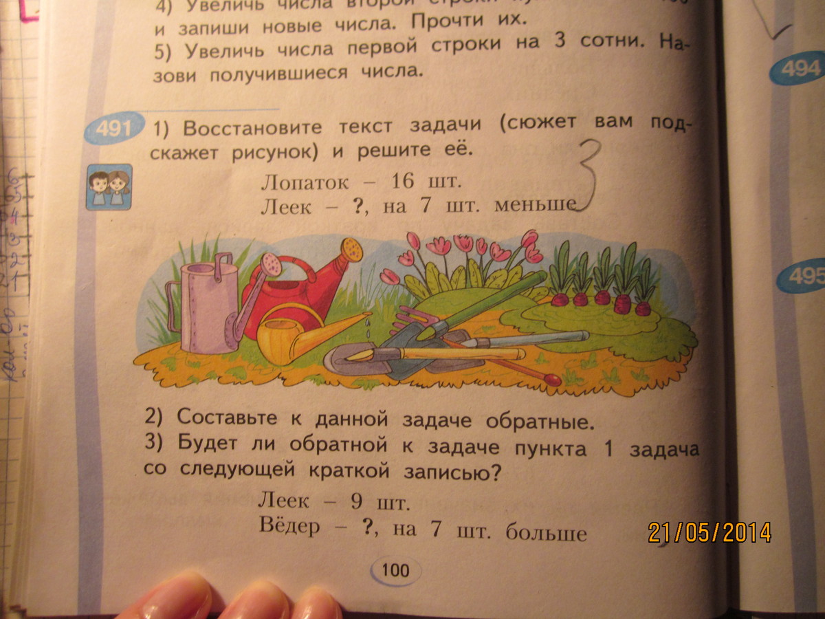 ... леек 9, лопаток на 7 больше. Сколько лопаток?