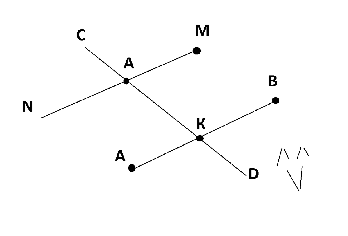 Выполните рискнок по описанию:прямая СD пересекает луч MN в точке А и пересекает отрезок АВ в точке К