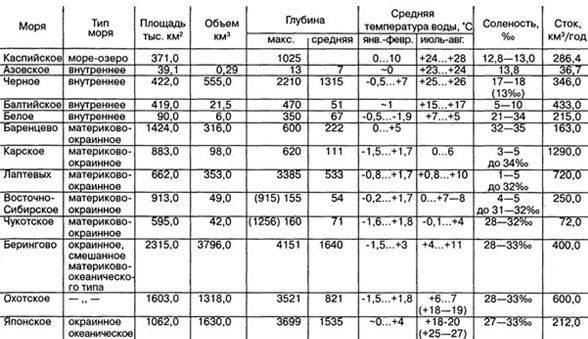 Баренцево море. Основные виды промысловых рыб: треска, пикша, мойва, сайка, сельдь, камбала, зубатка, окунь, палтус черный. Последние годы биоресурсы моря формировались, в основном, за счет трески, пикши и некоторых других донных рыб. В 1996-1997 гг. их доля в общем объеме вылова рыбы в море составляла 80-90%. В 1997 г наблюдалось снижение запасов тресковых рыб и пикши.Балтийское море. Основные промысловые виды рыб: треска, салака, шпрот, корюшка. После периода снижения стали расти запасы шпрота. Популяции салаки также находятся в относительно хорошем состоянии. Снизились запасы и вылов трески.Белое море. Основные промысловые виды рыб: навага, сельдь, семга. Их численность уменьшились. Так, запасы наваги вдвое ниже среднемноголетних. Состояние запасов беломорской семги оценивается как неудовлетворительное. Уменьшается численность лосося в промысловых водах бассейна, одна из основных причин - браконьерство. Запас сельди, оцениваемый в 1994 г примерно в 10 тыс.т, к 1997 г снизился до 5 тыс.т. Одна из основных причин уменьшения численности семги в море – браконьерство.Черное и Азовское моря. Основные виды промысловых рыб: осетровые, тюлька, хамса, лещ, судак, шпрот. Суммарный вылов в Азовско-Черноморском бассейне по всем видам рыб в среднем в 10 раз ниже допустимого (в 1997 г. он составил 8 тыс.т, или в 6 раз меньше общего допустимого установленного уровня). В 1997 г. судами Российской Федерации было добыто 0,8 тыс.т шпрота, что в 2 раза меньше, чем среднегодовой улов в 1992-1996 гг. В ближайшие годы в экономической зоне России, включая совместные с Украиной районы рыболовства, улов сохранится на уровне 150 тыс.т, что позволяет вылавливать России примерно 50 тыс.т. Реальный уровень добычи ожидается в пределах 10 тыс.т.Условия для возобновления запасов азовской хамсы в 1996-1997 гг. были вполне удовлетворительными. Численность леща находится на относительно низком уровне; в ближайшее время запас тюльки будет равен примерно 100 тыс.т, причем ее изъятие промыслом не превысит нескольких процентов от этого объема. Процесс сокращения численности азовских осетровых приобрел катастрофический характер: в 1997 г. она составила 4,2 млн. особей, т. е. сократилась по сравнению с началом 90-х годов более чем на 40%. Промысел осетровых на разрешенной (промышленной) основе будет прогрессивно сокращаться.Каспийский бассейн. Основные промысловые виды рыб: осетровые, килька, вобла, тарань, плотва, лещ, сельдь. Из 151,3 тыс.т рыб, выловленных в 1996 г, на долю полупроходных и речных приходится 56,1 тыс.т, в 1997 г - соответственно из 133 тыс.т - 51 тыс.т. Вылов кильки за последние годы остается примерно на одном уровне (90-110 тыс.т/год; в 1997 г. - 82 тыс.т, или 80% лимита). Улов воблы в 1997 г снизился по сравнению с предыдущим годом на 5,6 тыс.т, то есть около трети лимита. При допустимом уровне улова 22 тыс.т в российских водах в 1997 г добыто 18 тыс.т леща, что менше, чем в предыдущие пять лет. Вылов осетровых рыб в 1997 г, по сравнению с 1991 г, упал более с 8,5 до 1,3 тыс.т. Состояние их запасов в рассматриваемые годы оценивается как крайне неудовлетворительное.Дальневосточные моря. Основные виды промысловых рыб: минтай, лососевые, камбала, палтус, треска, навага, сельдь, терпуг, осетр, иваси. Минтай остается основным промысловым объектом. Увеличивается численность сельди. Многие годы отмечалась большая численность трески. Вылов лососевых рыб соста