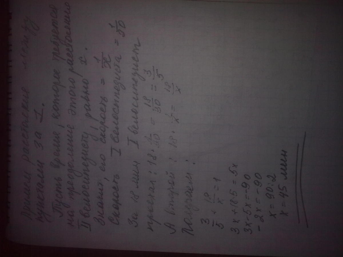 Два велосипедиста выехали одновременно из двух пунктов на встречу друг другу и встретились через 18 минут. за сколько минут второй велосипедист проезжает расстояние между этими пунктами,если первый велосипедист проезжает это расстояние за 30 минут?