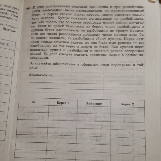 В 180: 1 столбик - цифры, 2 столбик - первый берег, 3 столбик - лодка и стрелка. 4 - второй берег