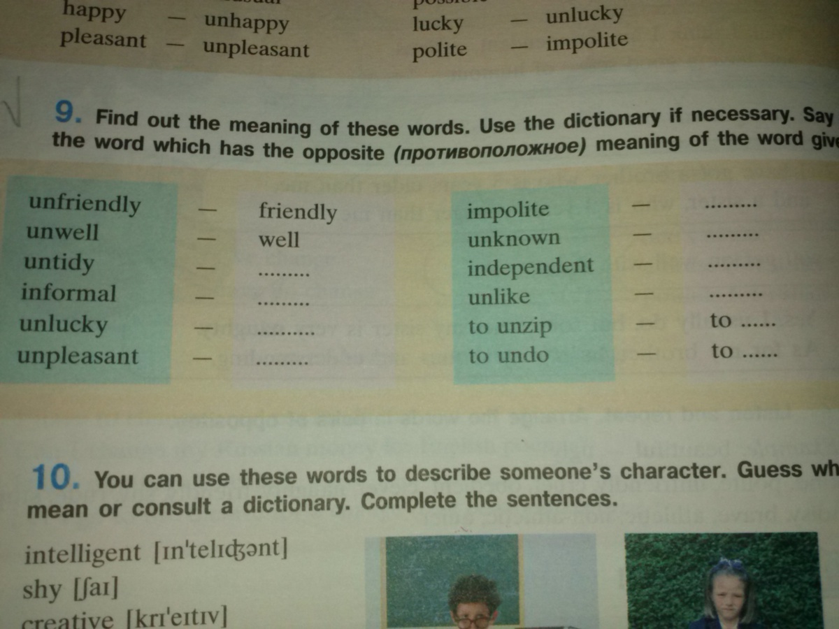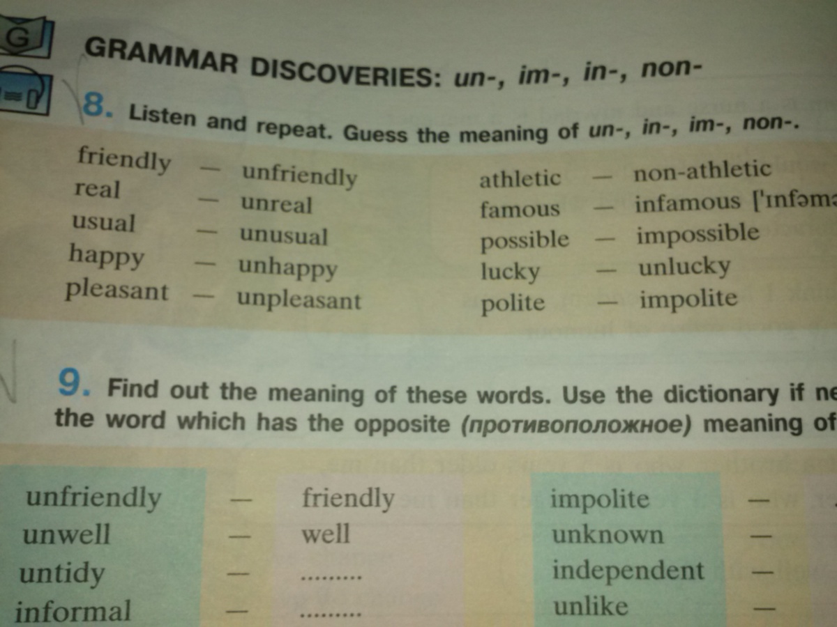 В первом нужно послушать и повторить а во втором найти противоположные слова