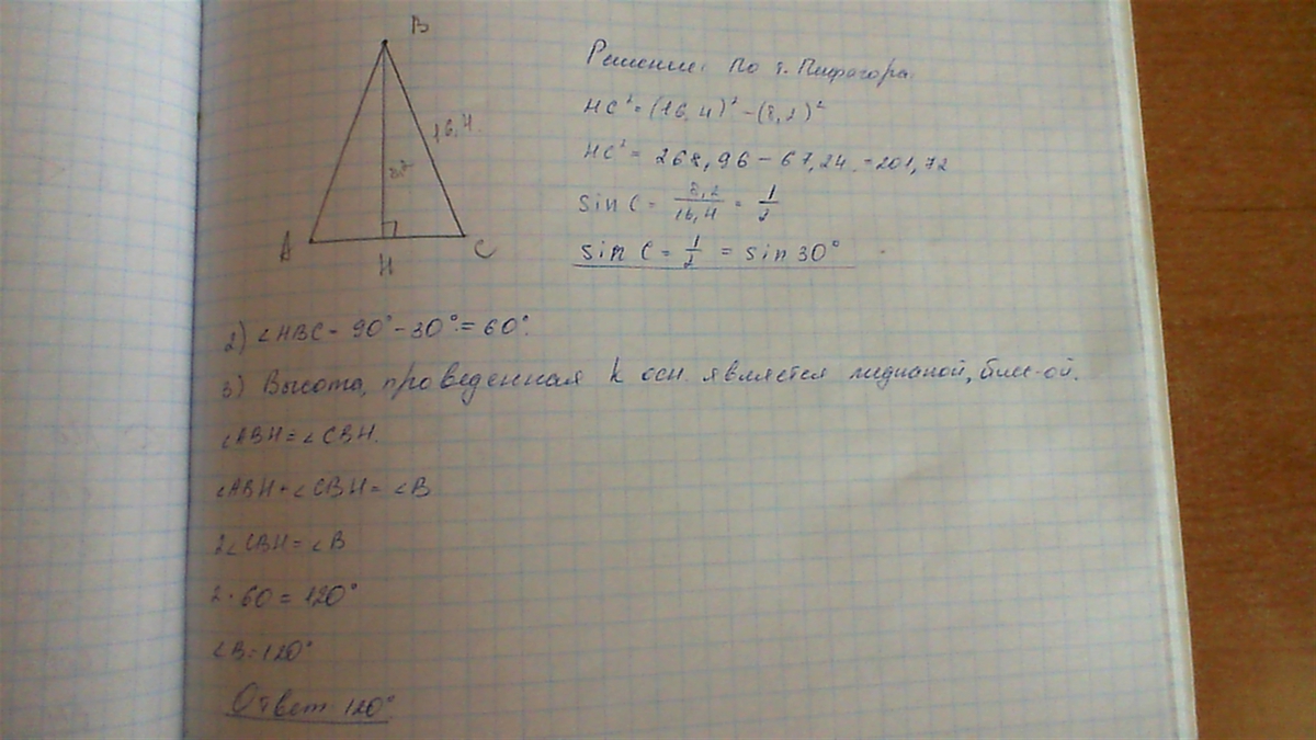 1) высота проведенная к основанию равнобедренного треугольника равна 8,2 см, а боковая сторона треугольника равна 16,4.Найдите углы,противолежащий основанию равнобедренного треугольника 2) Докажите равенства треугольников ABC и DKC используя данные рисунка