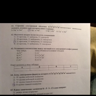 Установите соответствие между частицей и ее электронной конфигурацией :