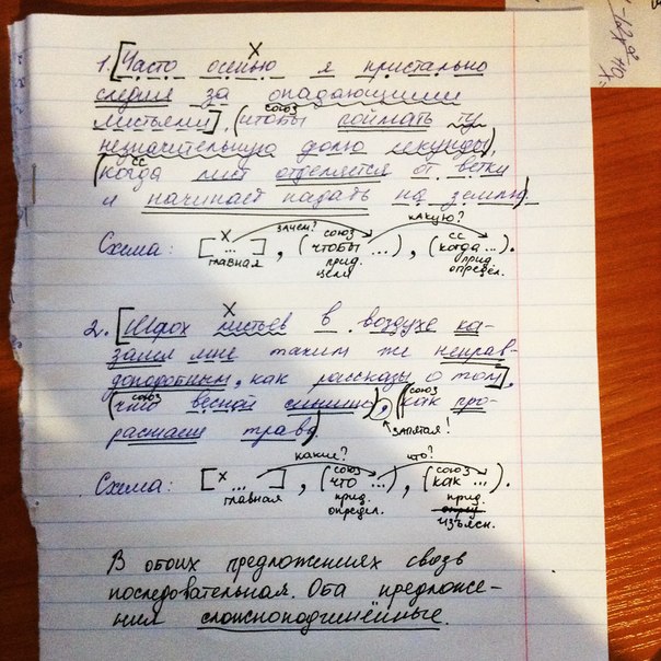 составить их схемы. Там нужно написать где главная часть, где придаточная, вопрос от главной к придаточной и все остальное.