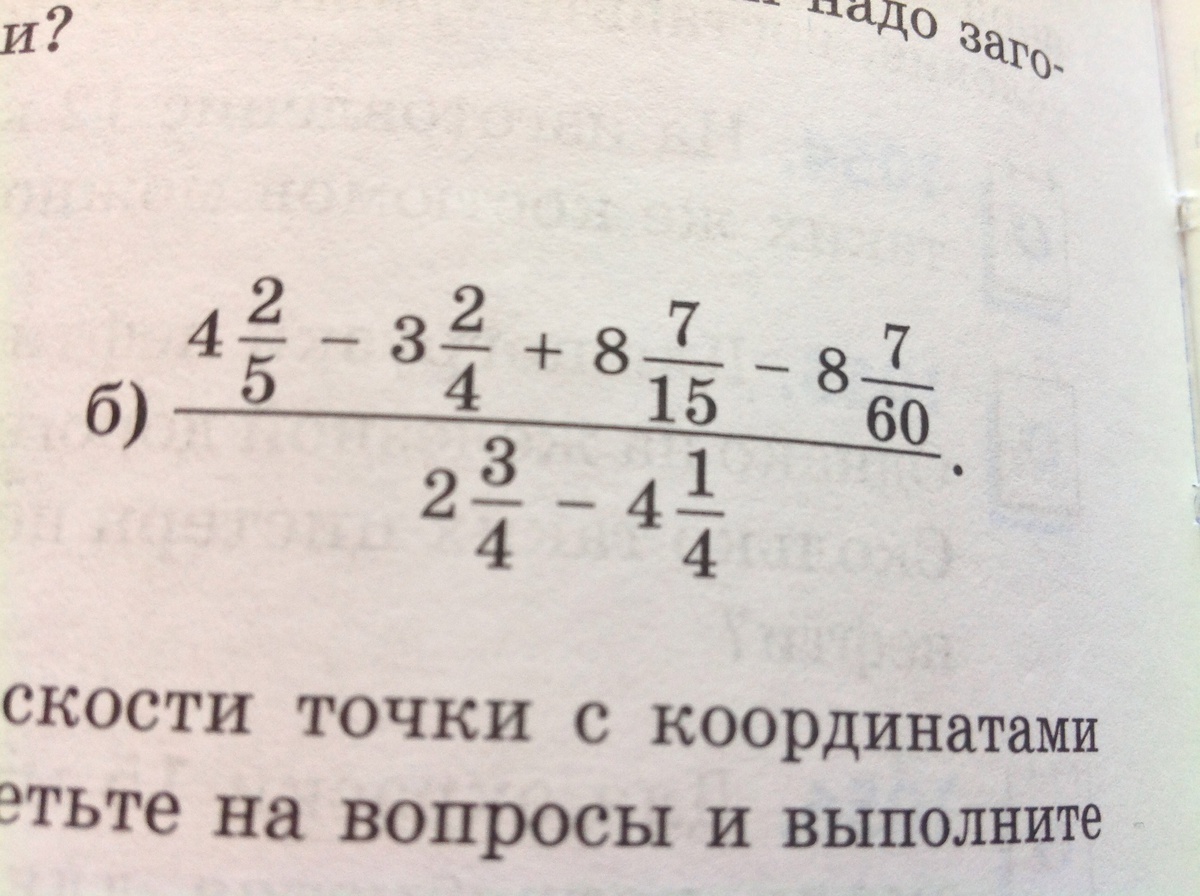 1)4 2/5-3 2/4= 9/10 2)8 7/15+9/10=9 11/30 3)9 11/30-8 7/60=1 1/60 4) 2 3/4-4 1/4= -1 1/2 5)1 1/60:(-1 1/2)=-61/90