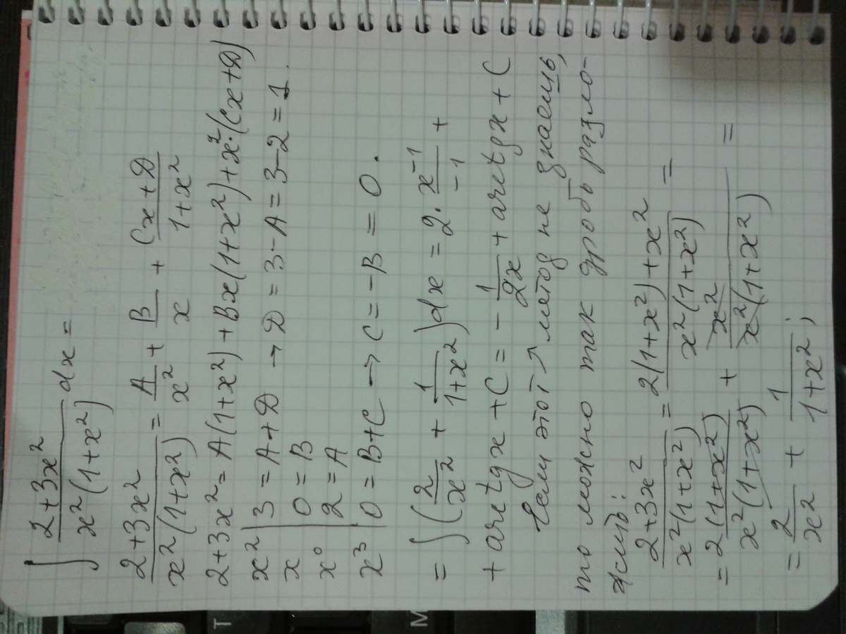 СРОЧНО !!! интеграл (2+3х^2)/(x^2(1+x^2))